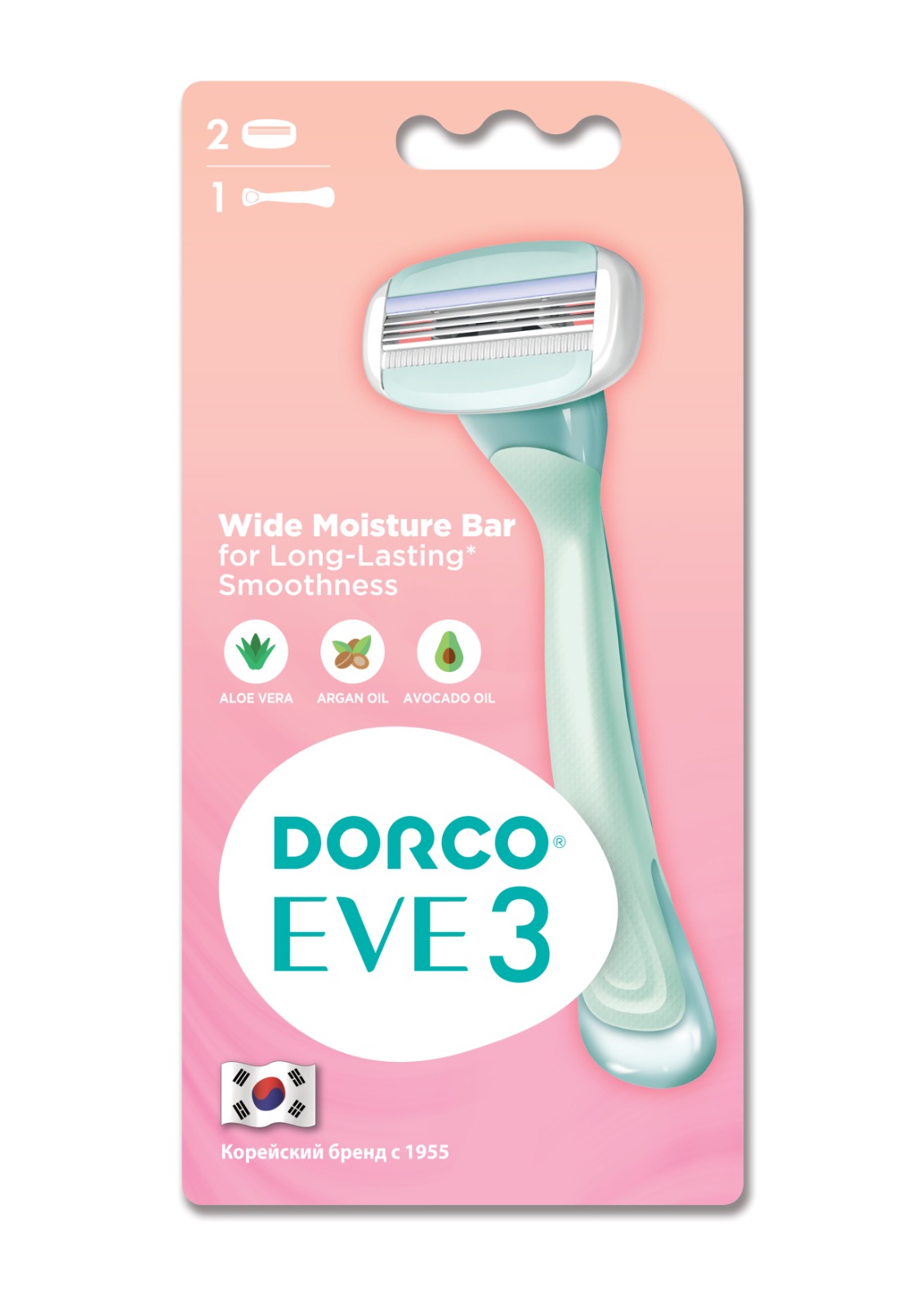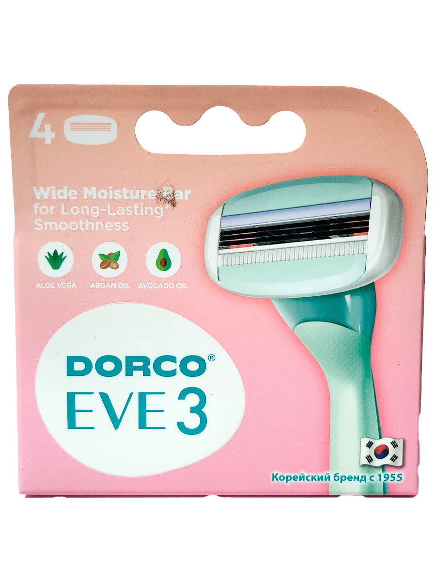DORCO EVE 3 (4 шт) кассеты Женские, 3 лезвия, 2 широкие увлажняющие полоски, LTRA1040